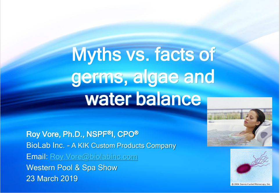 A presentation by Dr. Roy Vore at the 2017 Western Pool & Spa Show